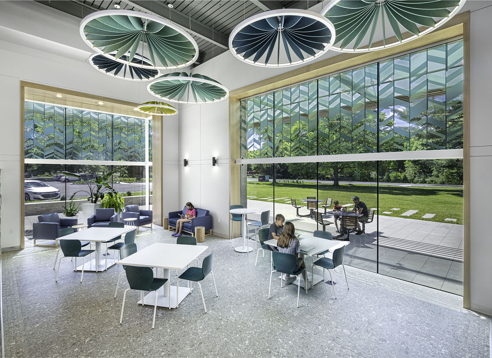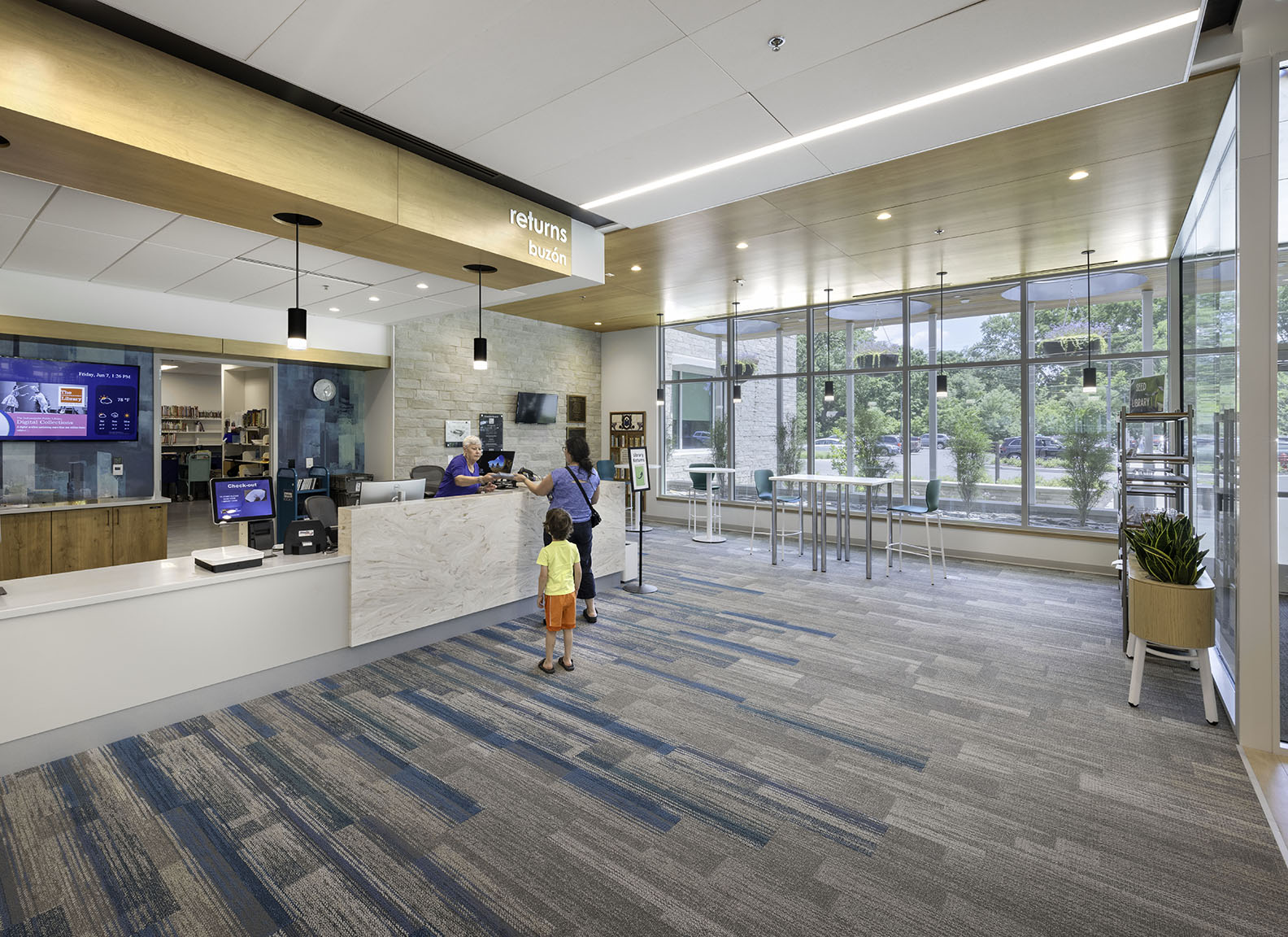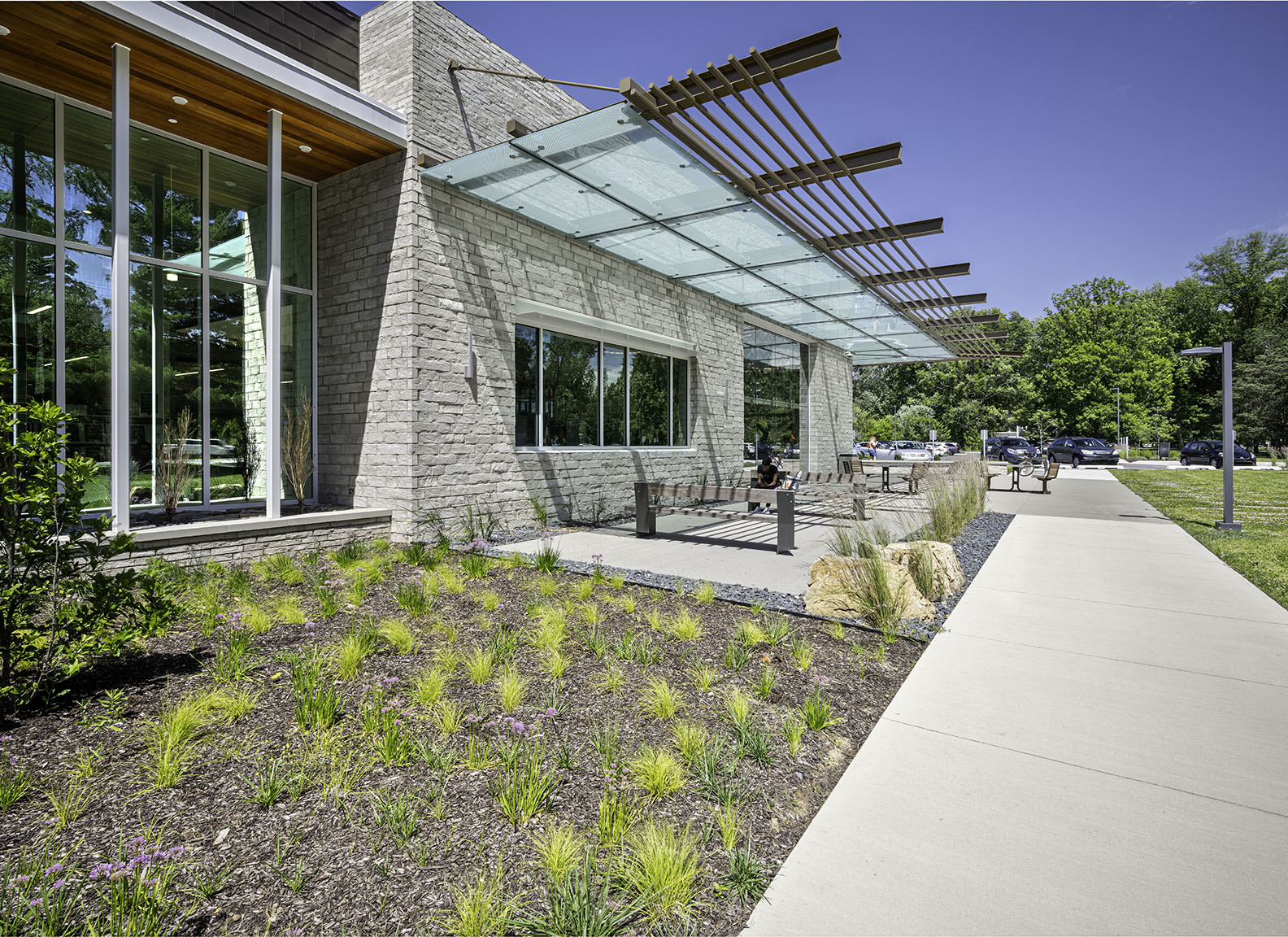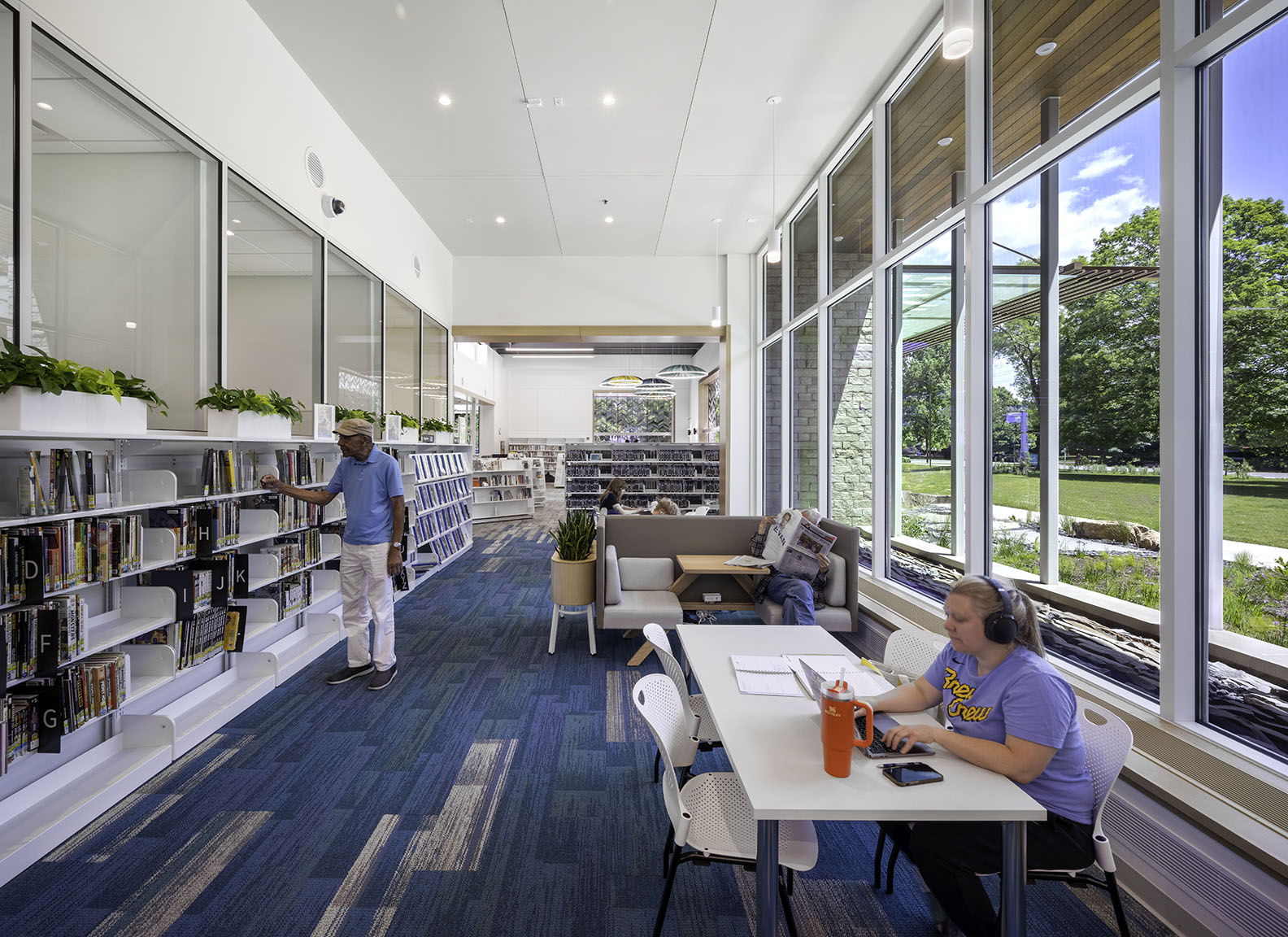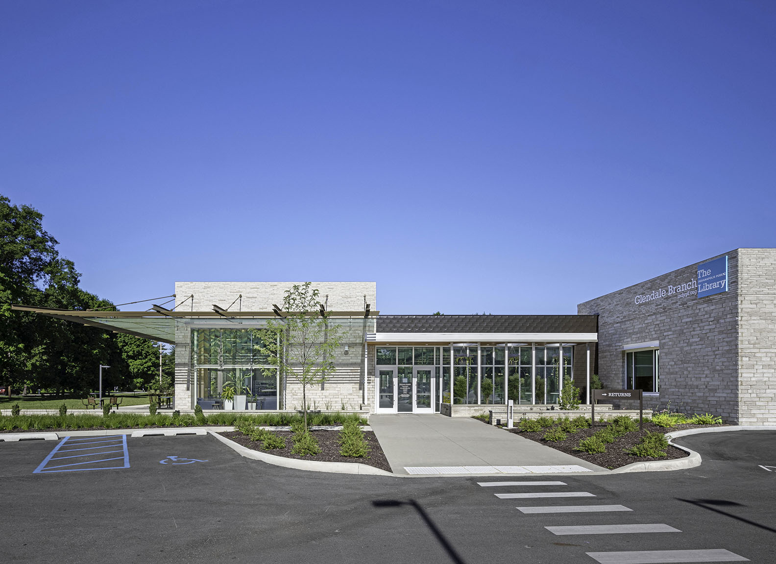 Through this project, the Glendale Branch of the Indianapolis Public Library relocated one of the busiest branches in the system, from its previous location in the Glendale Town Center to a new, standalone building embedded within a residential neighborhood. Our design team carried out a wide-reaching community engagement process that influenced the early design decisions for the project, particularly the building massing, material choices, and building programming. The design respects the scale of the surrounding neighborhood while still giving the presence of an important civic and community building.